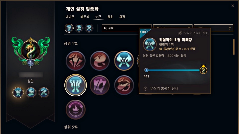 무작위 총력전 챌린저 1위 토큰 3개 획득