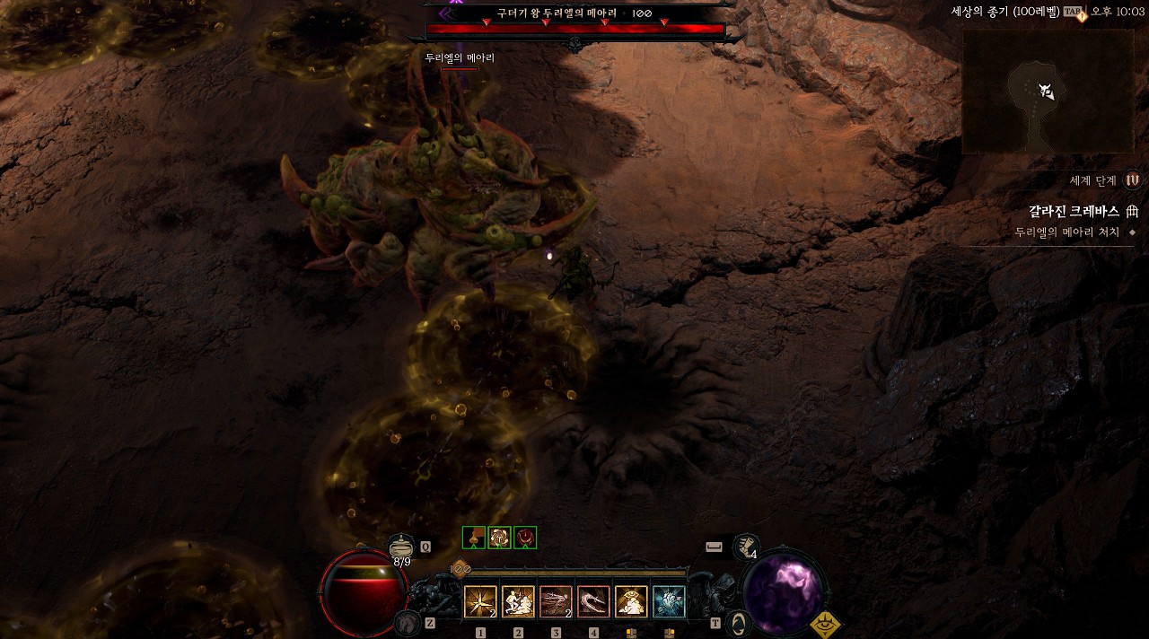 미니미들을 처리하고 나면 땅이 흔들리면서 안쪽 구덩이에서 두리엘이 나타납니다.
