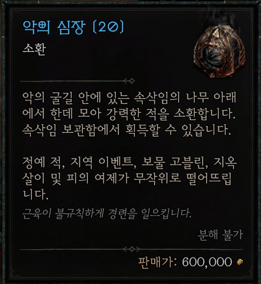 악의 심장 또한 피의 여제나 정예 적, 지역 이벤트, 보물 고블린, 지옥살이등을 잡다 보면 무작위로 떨어지지만