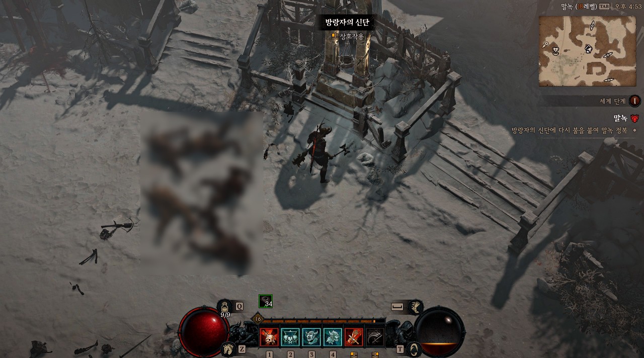 서리뿔을 처리했으면 방랑자의 신단에 불을 붙여 말녹을 정복하도록 합시다. 방랑자의 신단은 미니맵에 흰색 마름모 모양으로 표시가 됩니다.