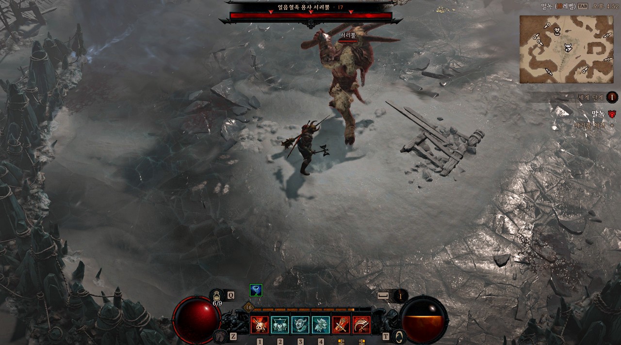 그곳에서는 얼음혈족 폭풍 소환사가 기운을 주는 의식을 진행하고 있습니다. 중단하기 위해서 공격을 하면 무적 상태가 되면서 의식 수호자라는 정예 몬스터가 한 마리 튀어나옵니다. 의식 수호자를 먼저 처치하면 폭풍 소환사의 무적 상태가 해제되는데 이때 폭풍소환사를 처치하면 의식이 중단됩니다.
