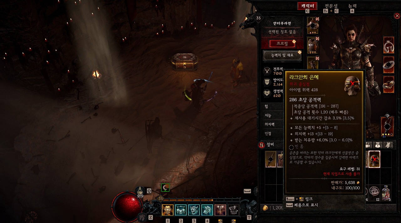 라크안에게 말을 좀 더 걸어보면 자신은 고통을 먹고살고 있는데 수집한 유물들이 자신을 살려준다고 합니다. 그 덕에 살생을 하지 않고 성역을 거닐 수 있다고 하네요.