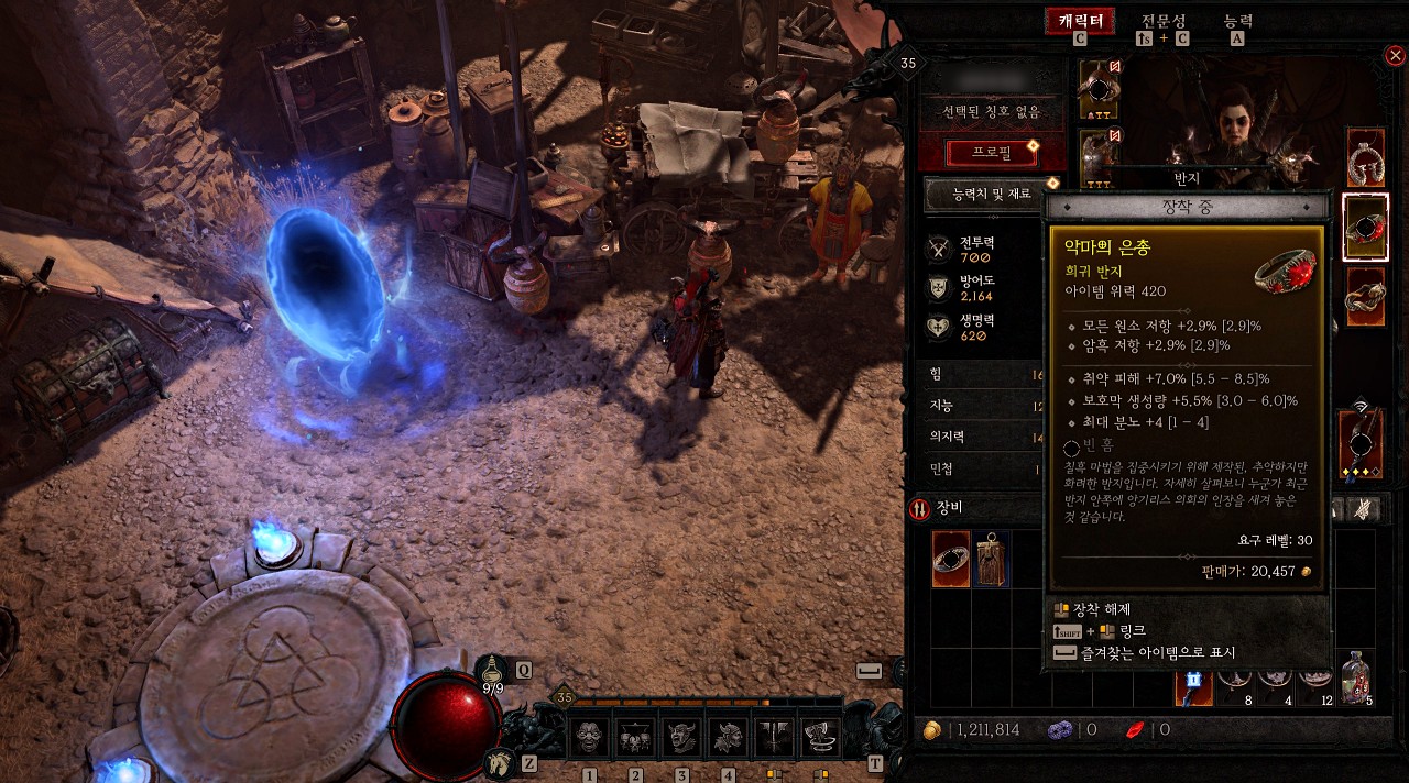 악마들을 잡으면 빨간색 정수들이 드롭되는데 해당 정수를 획득하면 게이지가 차게 되고 전부 채우면 '활성화된 반지' 퀘스트 아이템을 획득할 수 있습니다.