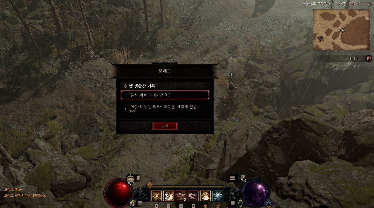 툴팁에는 "스코스글렌의 옛 생활상을 기록하려는 모레그를 도와줘야 합니다."라고 적혀있습니다.