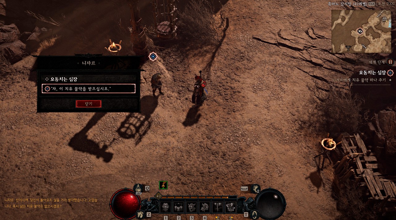 이번 공략은 메마른 평원 흑마노 감시탑의 NPC 니자르에게서 시작할 수 있는 부가 퀘스트 '요동치는 심장'입니다.