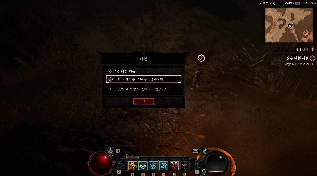 언데드를 50마리 잡았으면 나얀에게 돌아가 알려주도록 합시다. 나얀 바로 앞에 있는 좀비들을 잡아도 카운트가 되니까 너무 멀리 가서 잡을 필요 없습니다.