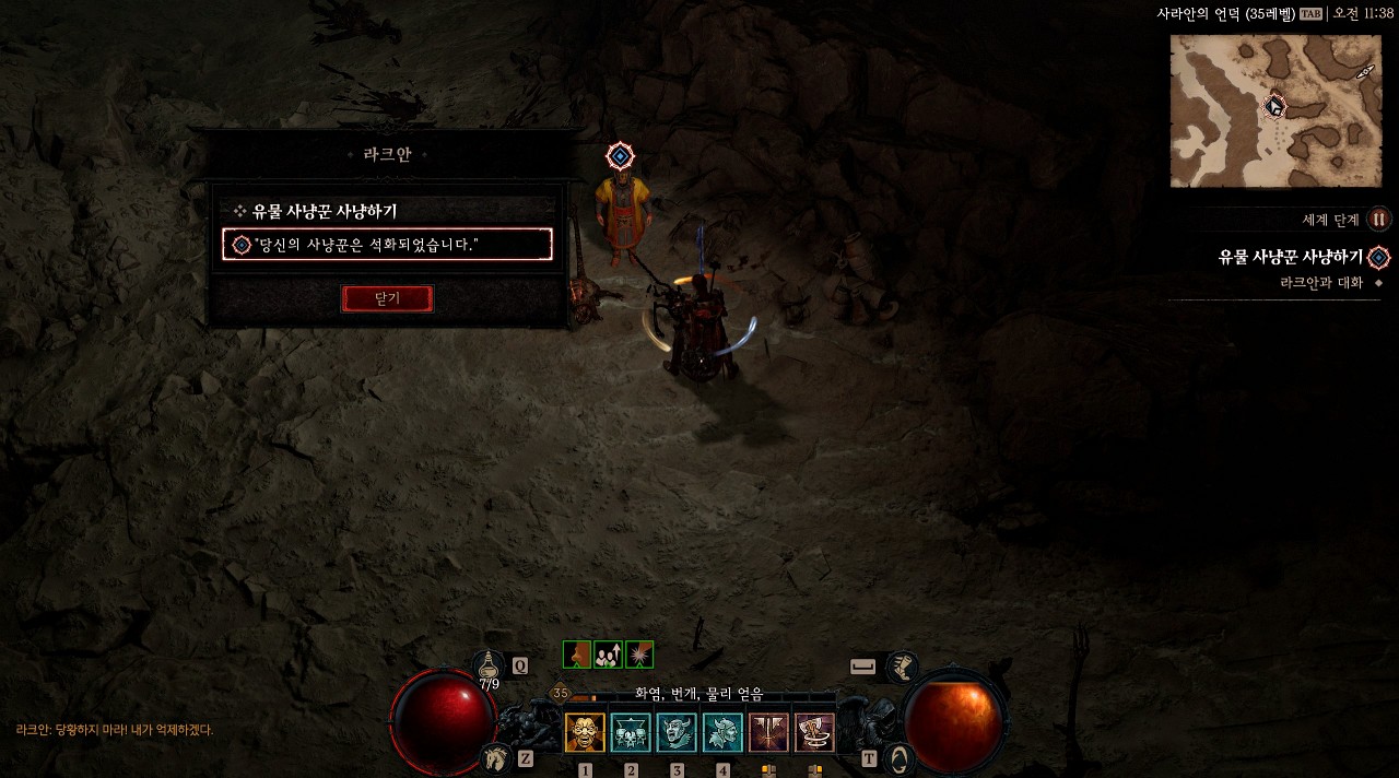 내용을 들어 보면 라크안은 또 다른 유물이 콰라 이수에 있기를 바랐는데 그곳으로 이미 보낸 사냥꾼이 돌아오지 않았다고 합니다. 죽었든 늦었든 도움이 필요할 것 같은데 한번 가보겠냐고 물어봅니다.