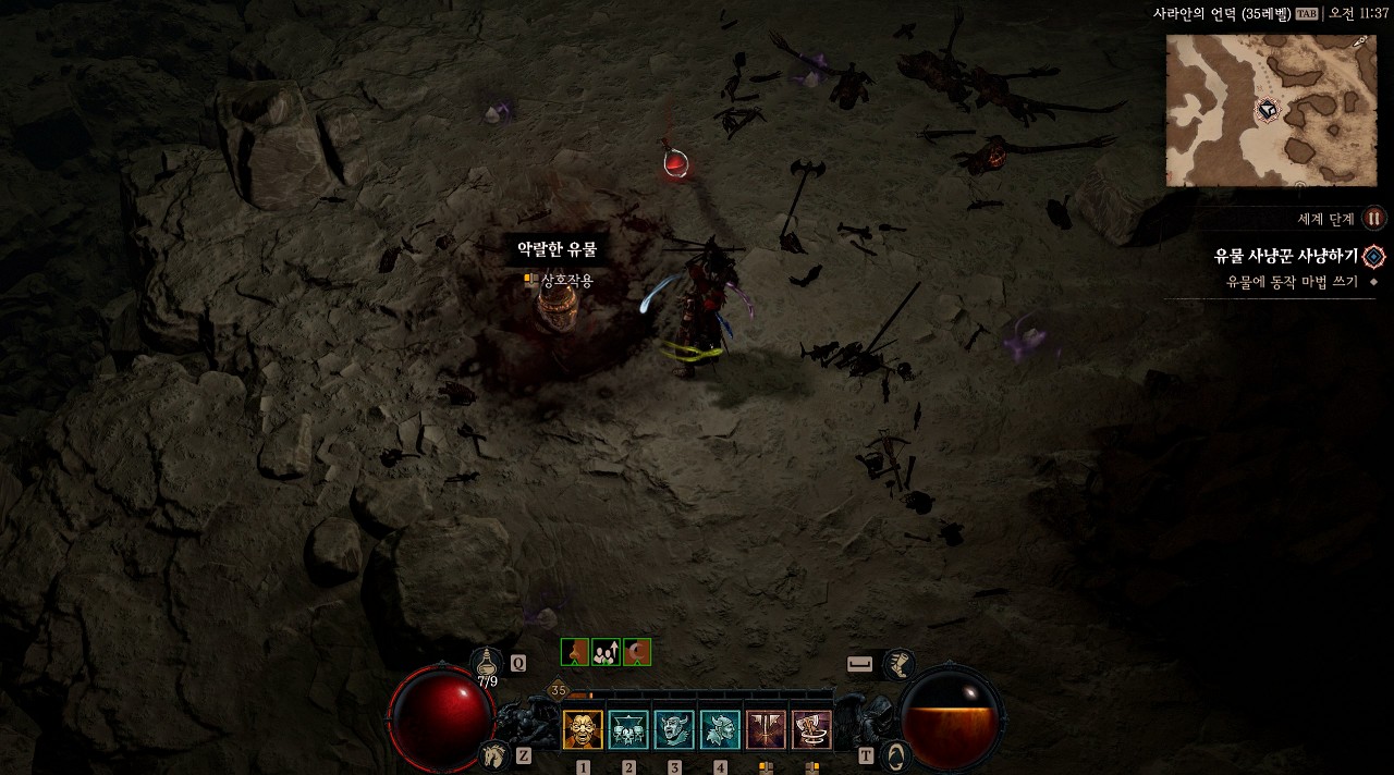언데드들을 전부 처치하고 나면 상호작용 할 수 있는 악랄한 유물이 스폰되고 동작 마법으로 유물을 라크안에게 전송하면 됩니다.