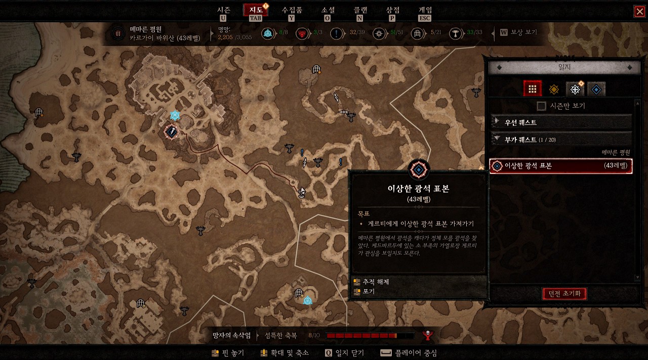 디아블로 4 부가 퀘스트 이상한 광석 표본 (랜덤 드롭)