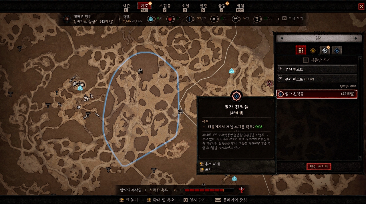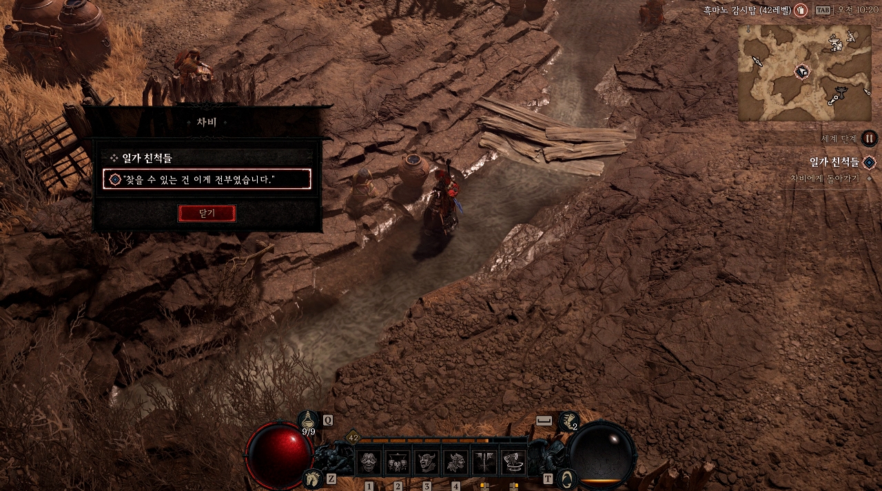 해당 지역에서 해골 몬스터를 사냥하면 개인 소지품을 드롭하는데 그것을 15개 모아서 차비에게 돌아가는 것이 목표입니다.