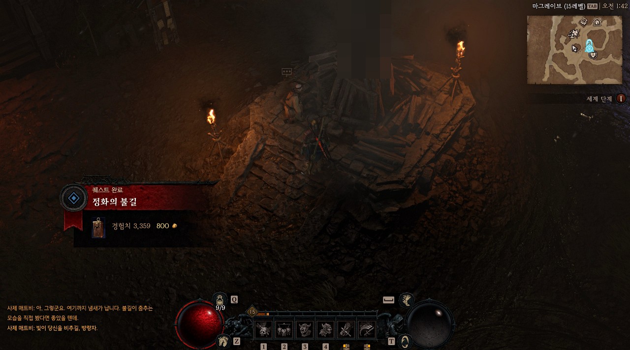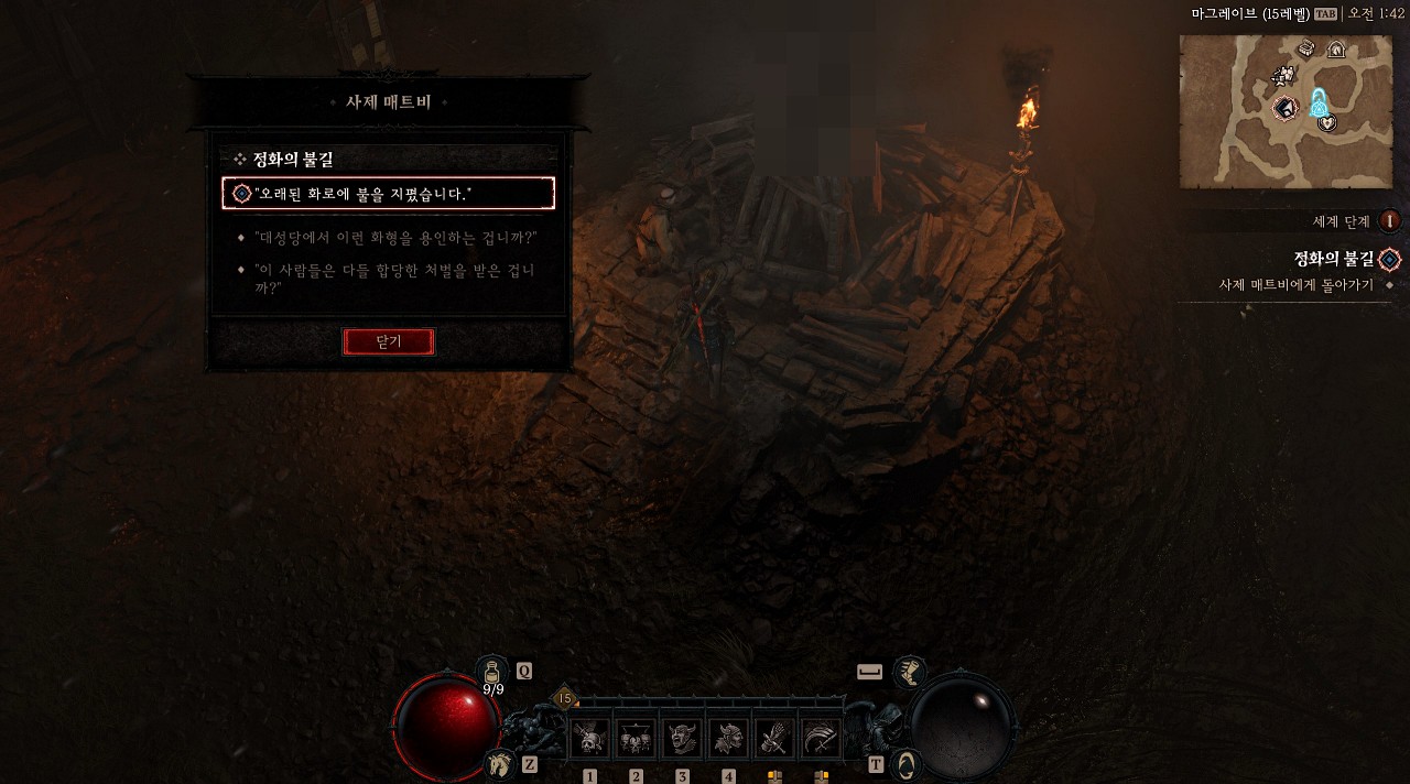 참회의 기사단이 주변 숲을 순찰하던 시절에는 축성받은 화로를 높이 세워 화로에 불을 밝혀고 악을 몰아내 왔다며 멀지 않은 곳에 화로가 하나 있으니 그곳으로 가서 불을 붙여 주지 않겠냐고 의뢰합니다.