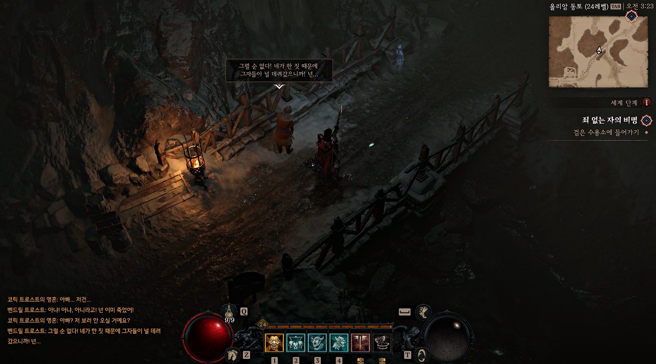 이번 퀘스트는 조각난 봉우리 키요바샤드 동쪽 문으로 나가면 도시 밖에서 만날 수 있는 NPC 벤드릴 트로스트에게서 시작할 수 있는 '죄 없는 자의 비명'입니다.