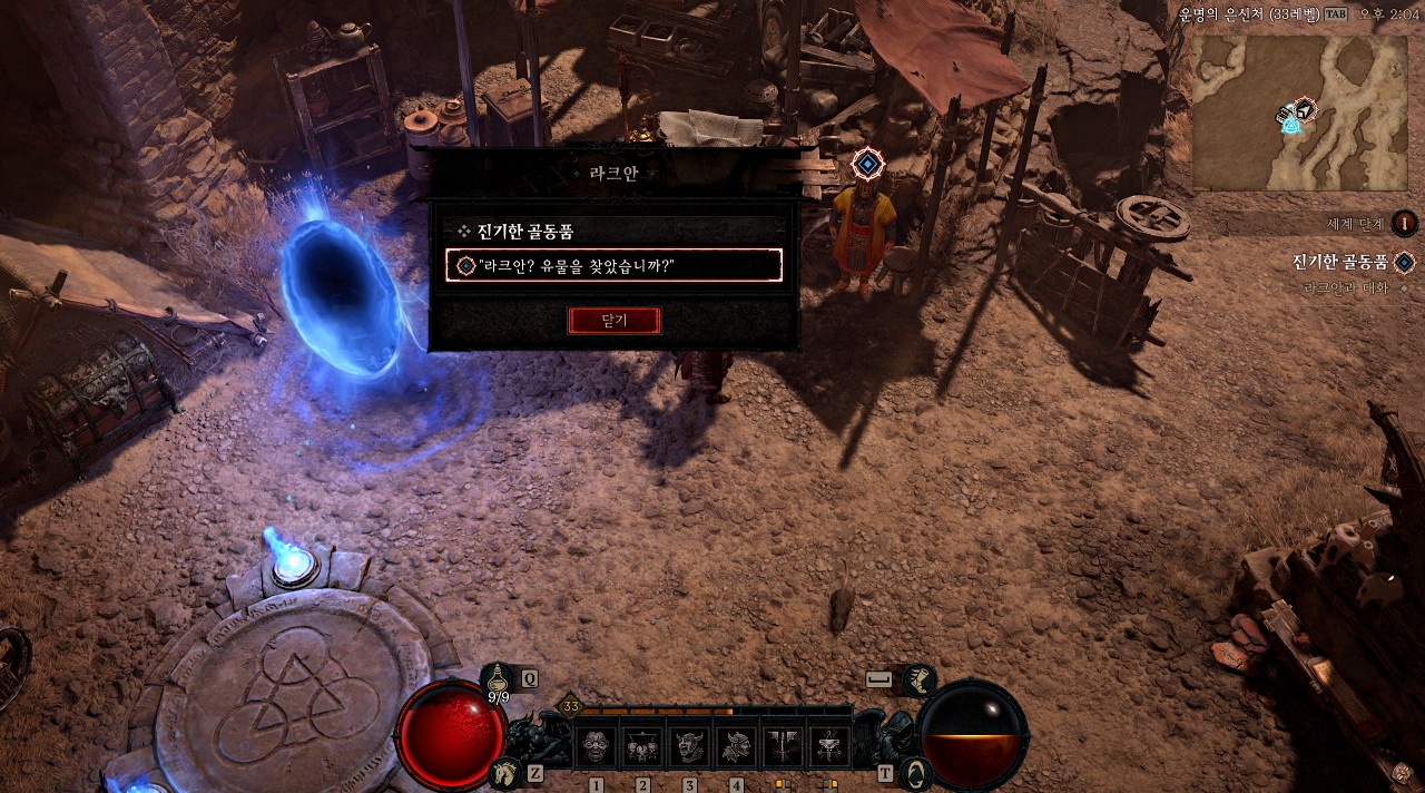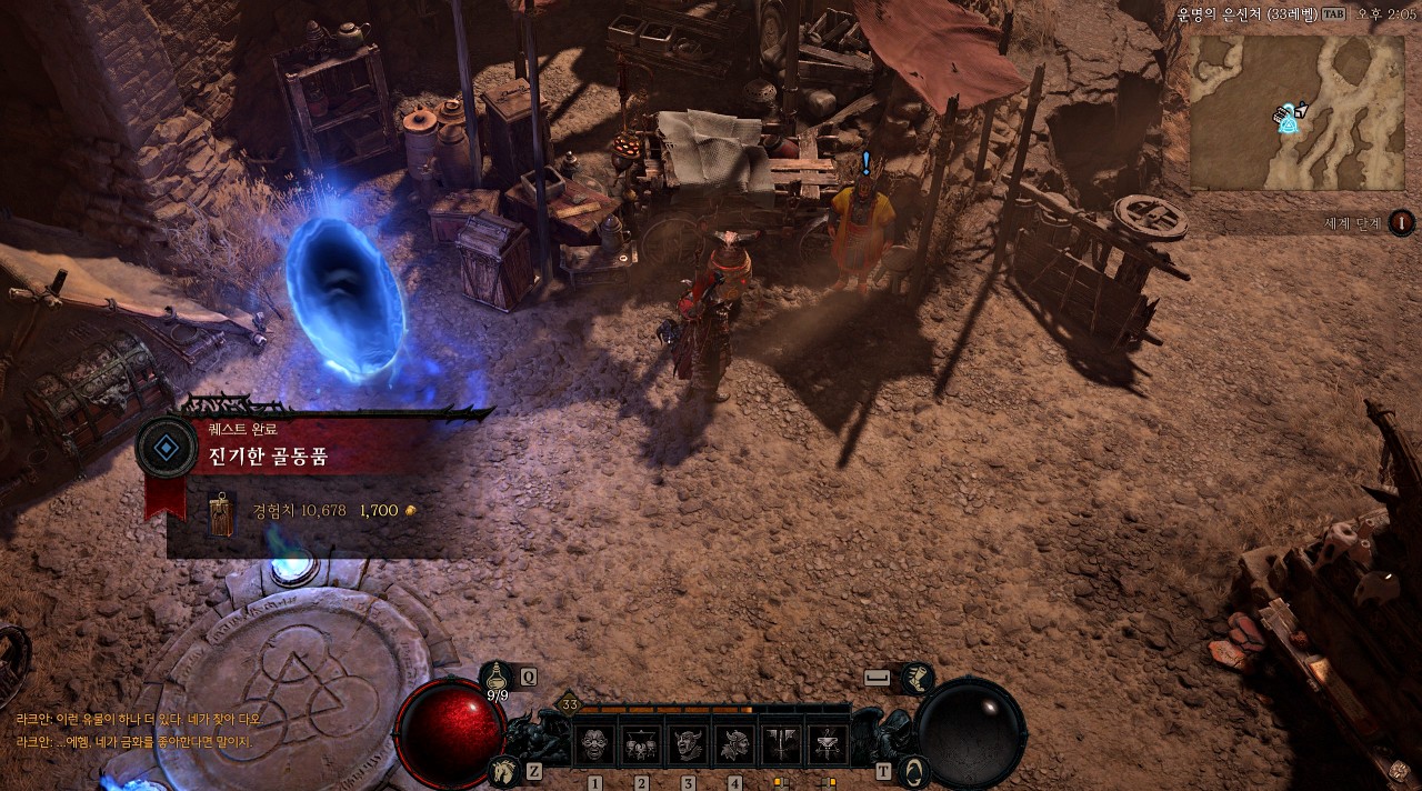 라크안에게 유물을 찾았냐고 물어보면 아주 상태 좋게 찾았다고 이야기하면서 자신이 고용한 사냥꾼은 어찌 되었는지 물어봅니다.