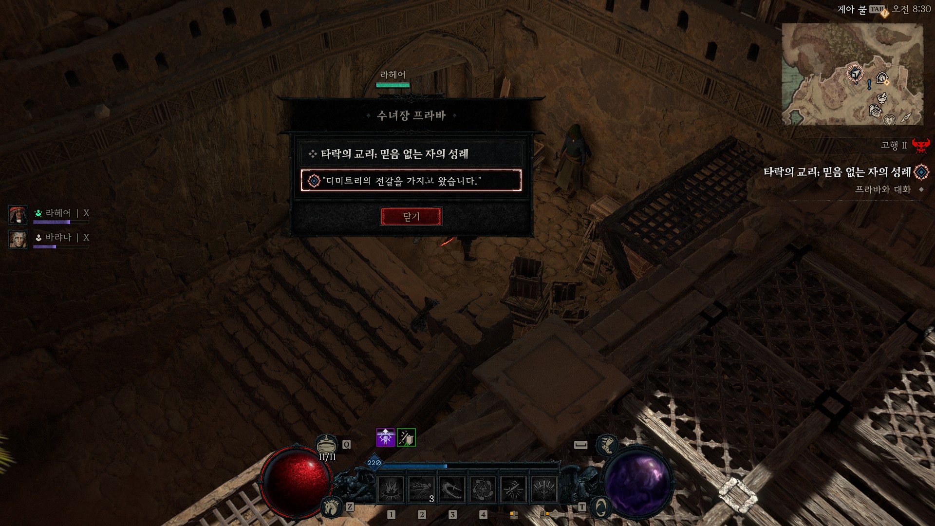 프라바에게 디미트리의 전갈을 가지고 왔다고 이야기를 건네어 봅시다.