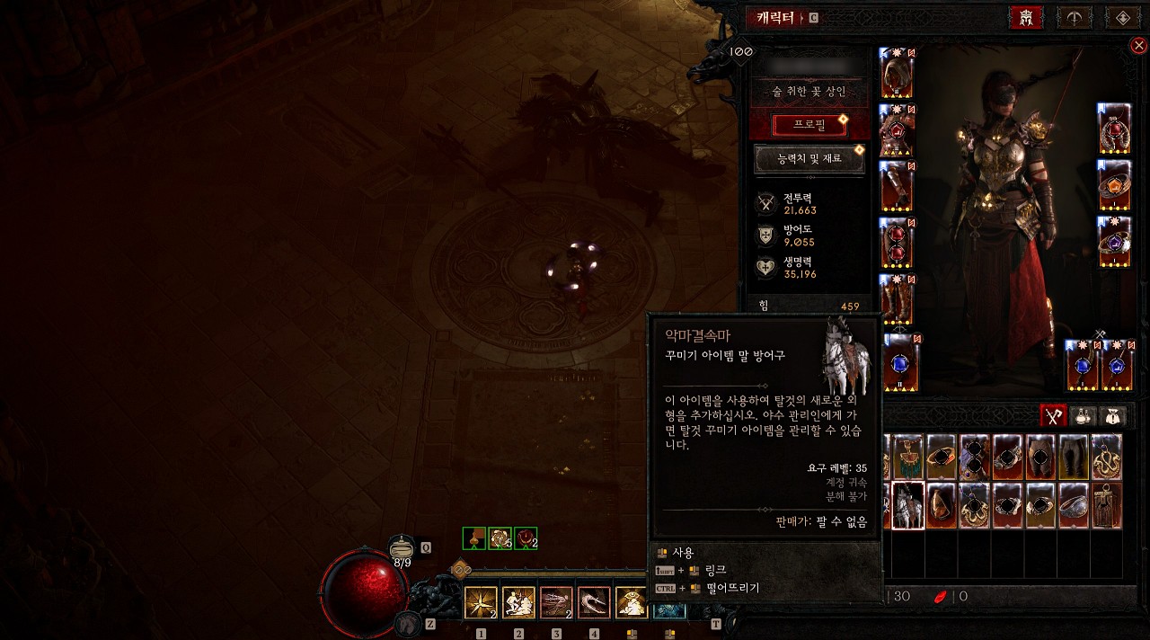 고정 드롭인지는 잘 모르겠지만 고행의 고행 난이도 보스 첫 클리어시 '악마결속마'라는 말 한마리를 줍니다.