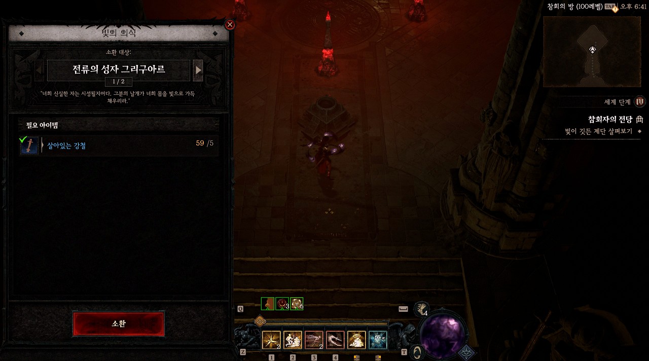 그러면 빛의 의식을 통해서 전류의 성자 그리구아르를 소환할 수 있는 탭이 나옵니다.