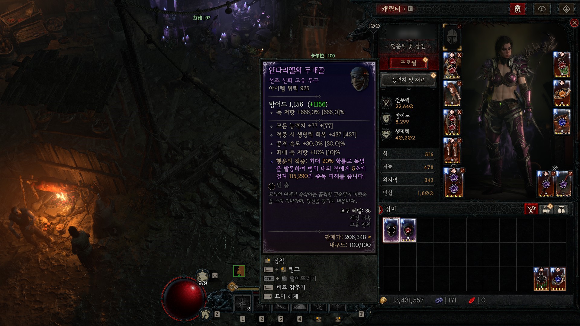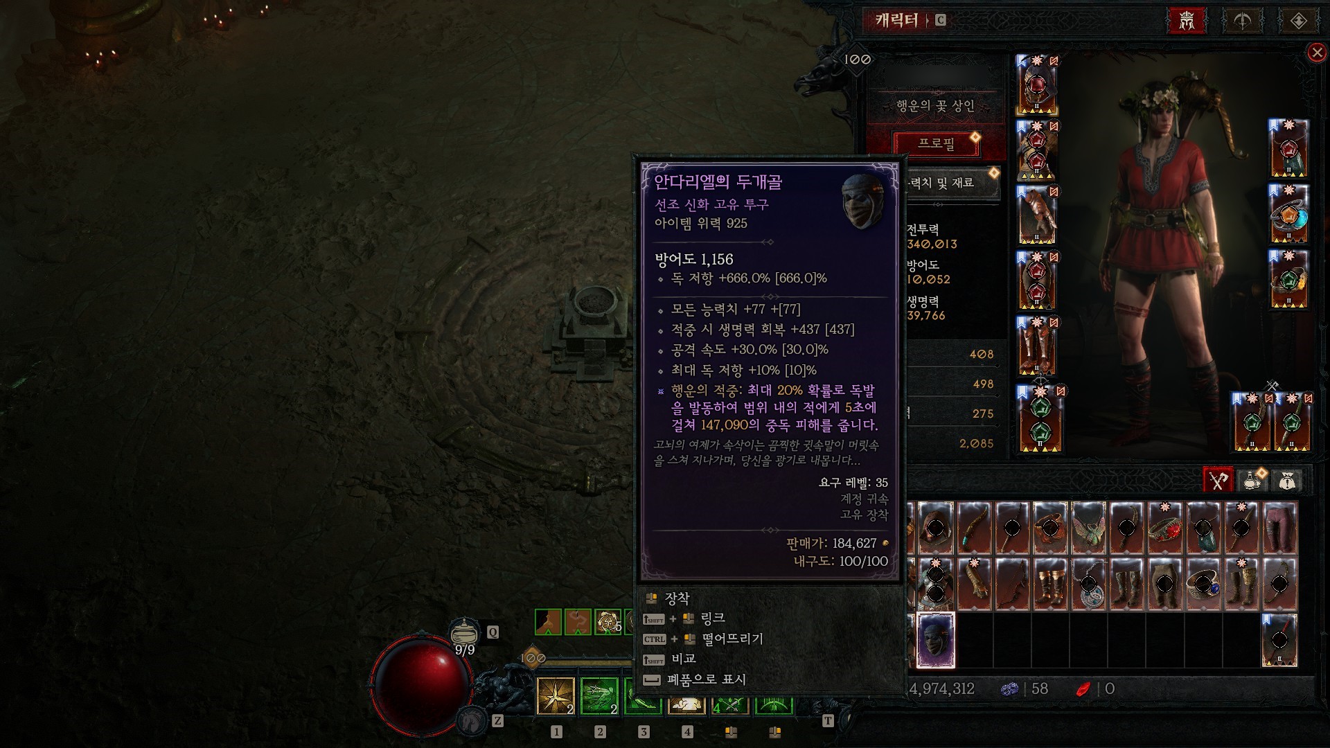 지금까지의 최종 빌드라고 알려진 행운 적중 확률과 안다리엘의 두개골을 사용한