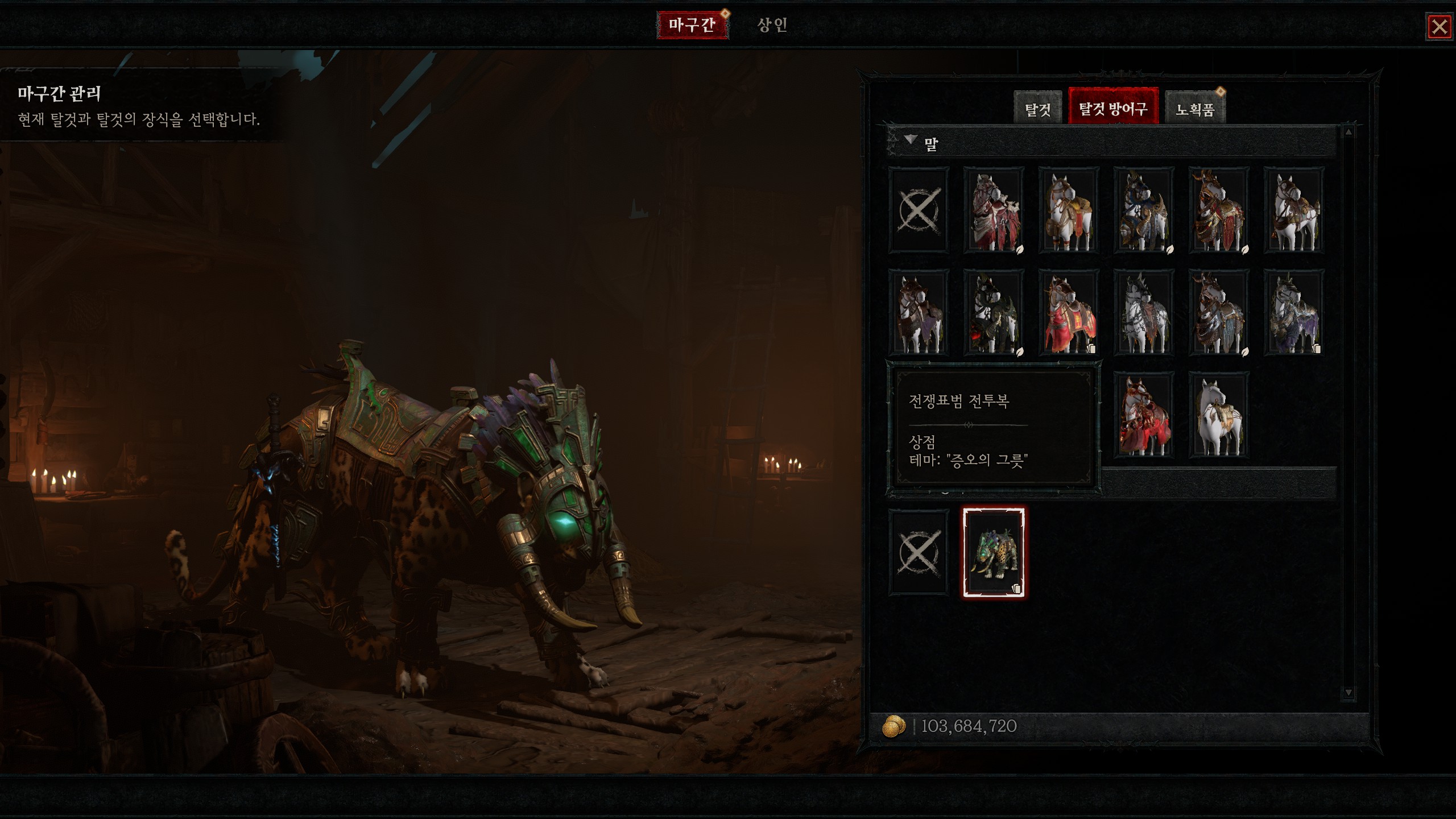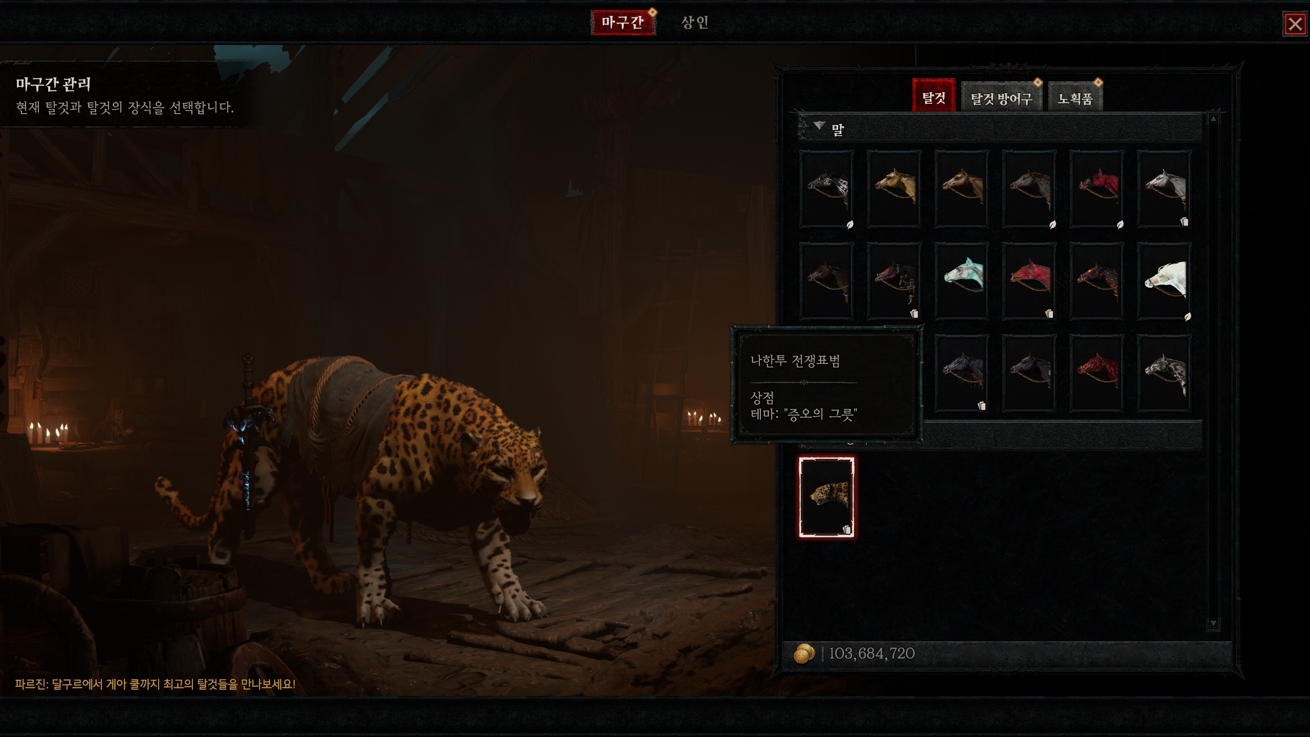 마구간에서 볼 때는 약간 박제 표범 같은 느낌인데 인게임에서 보면 상당히 자연스럽습니다.