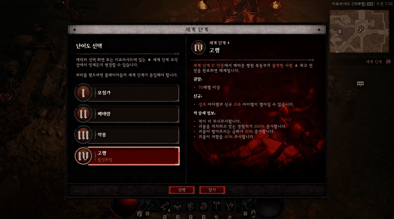 저는 부가 퀘스트와 인던을 먼저 전부 클리어하고 시즌 퀘스트를 고행 난이도로 가장 나중에 진행을 했는데요.