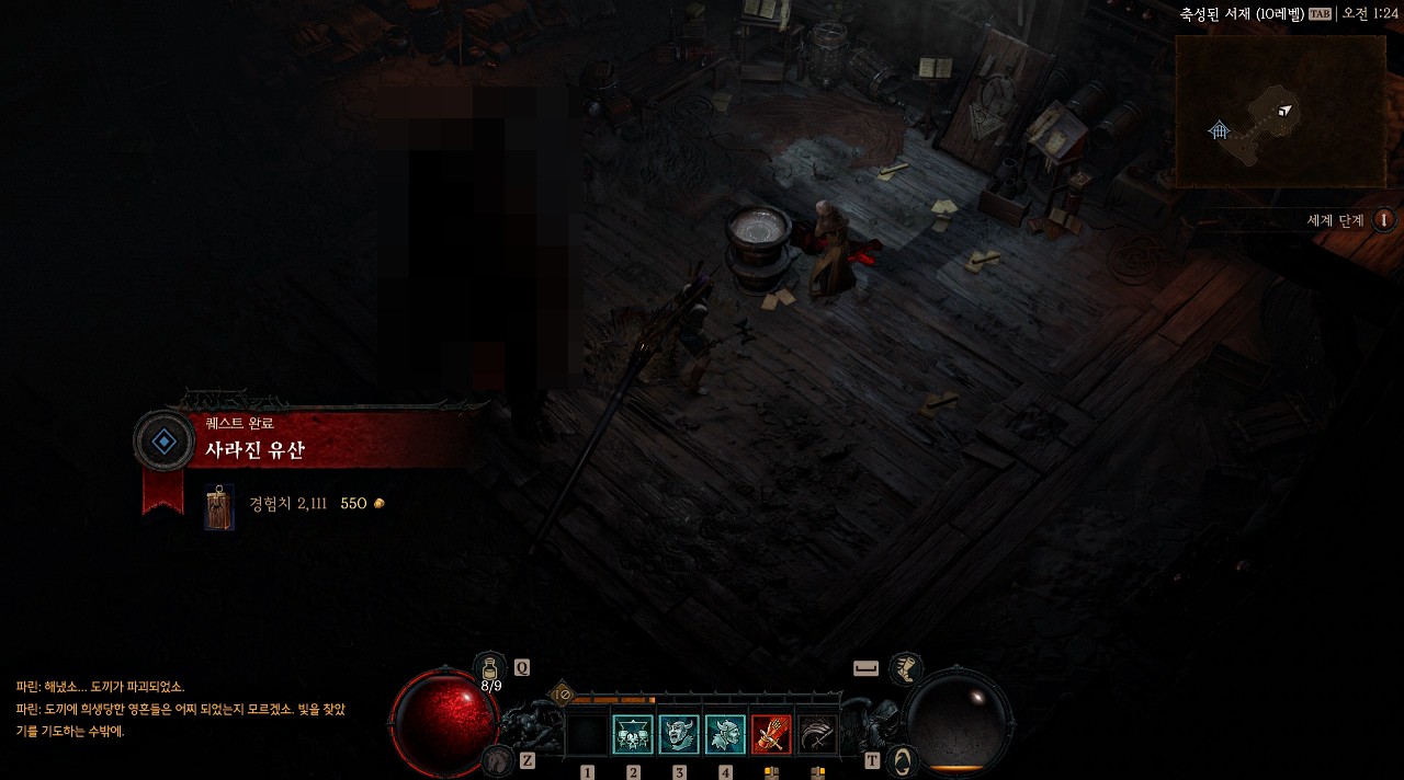 도끼에 깃든 막달레나의 영혼과 나무꾼 악마를 처리하고 나면 파린이 도끼를 파괴하라고 외치는데 성수에 담긴 도끼와 상호작용하면 도끼를 파괴할 수 있습니다. 월드 오브 워크래프트의 어둠한처럼 엄청 많은 영혼들이 도끼에 서려 있는 줄 알았는데 겨우 둘이었네요.