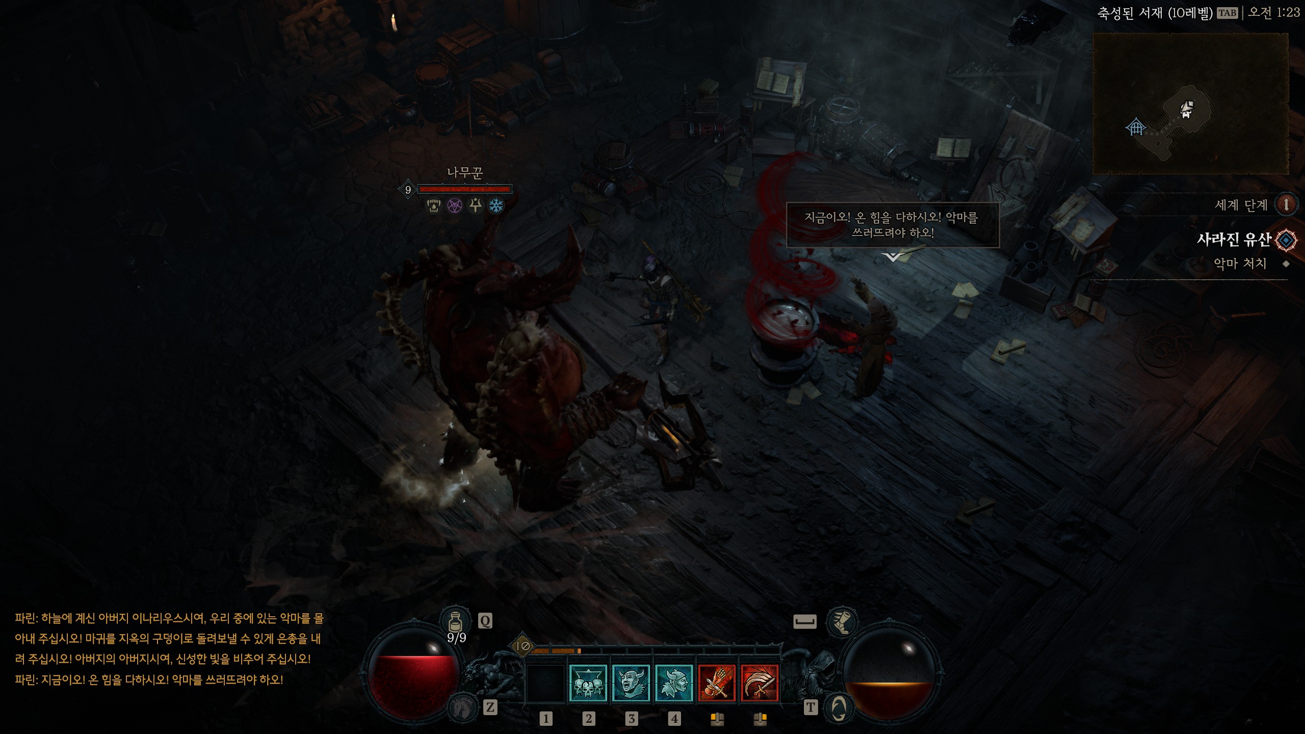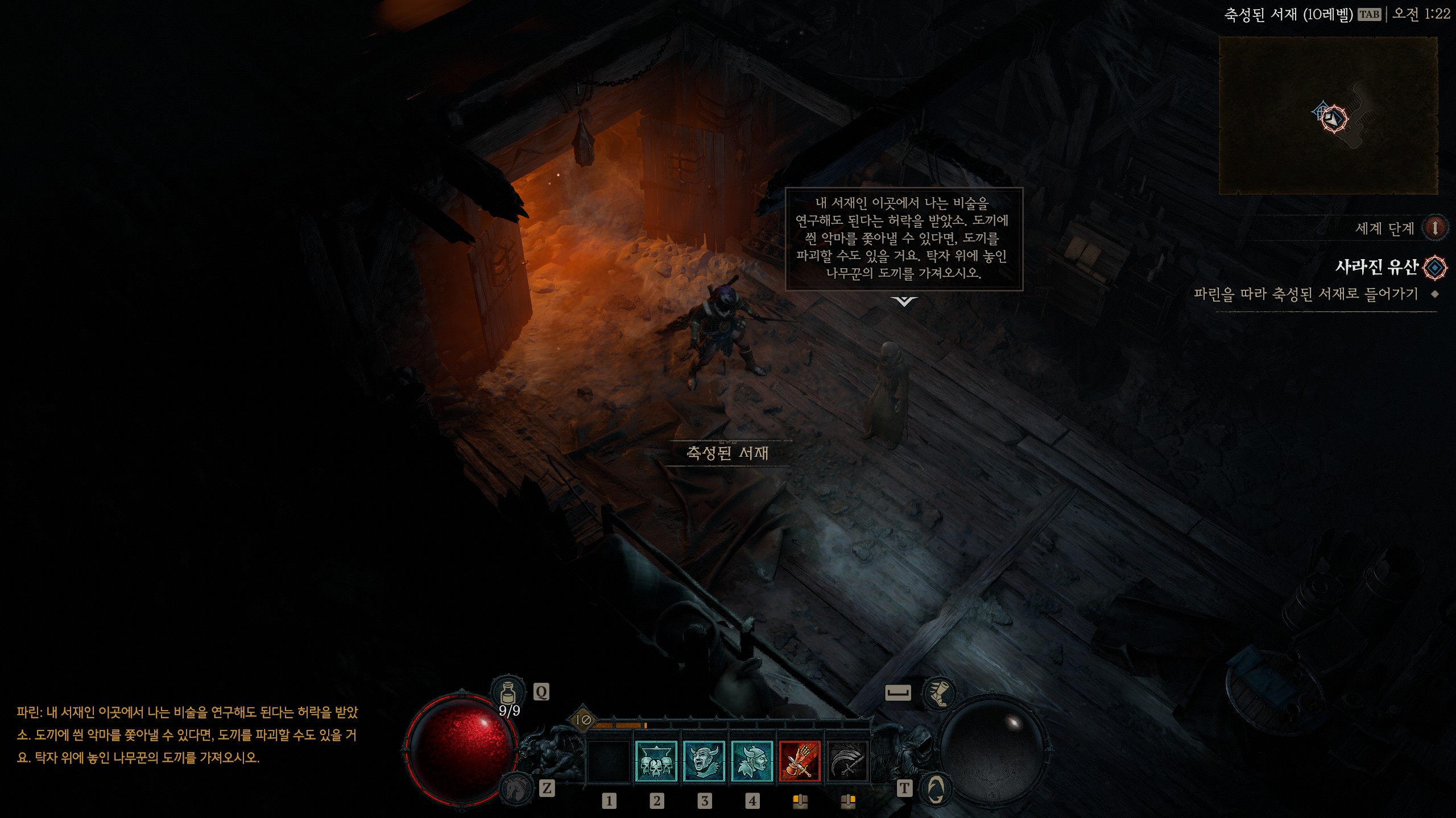 악령이 깃든 나무꾼의 도끼를 파괴하기 위해서 수도사 파린이 자신의 서재가 적합할 것 같다며 플레이어를 부릅니다. 불길한 바람의 바위산으로 가서 파린을 만나보도록 합시다.