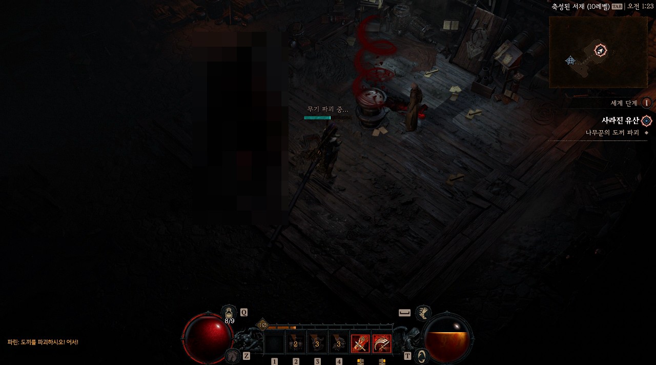 도끼에 깃든 막달레나의 영혼과 나무꾼 악마를 처리하고 나면 파린이 도끼를 파괴하라고 외치는데 성수에 담긴 도끼와 상호작용하면 도끼를 파괴할 수 있습니다. 월드 오브 워크래프트의 어둠한처럼 엄청 많은 영혼들이 도끼에 서려 있는 줄 알았는데 겨우 둘이었네요.