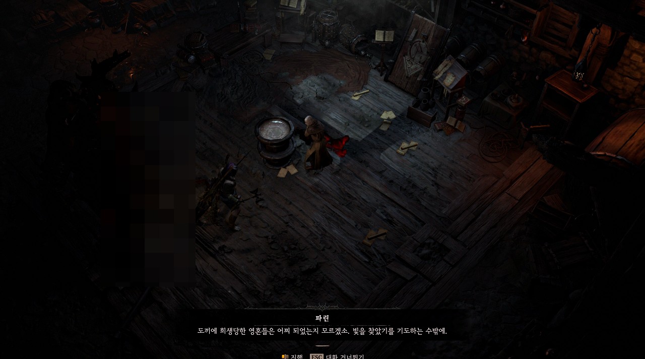 도착하면 파린이 맞이해 줍니다. 이목을 끌기 전에 빨리 움직이자고 이야기하고는 자신의 서재로 들어갑니다. 서재는 인스턴트 던전 형식으로 바로 뒤쪽에 팝업이 됩니다.