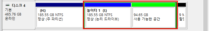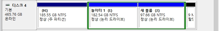 필자는 놀이터 1과 놀이터 2의 파티션을 합쳐 볼 예정이다.