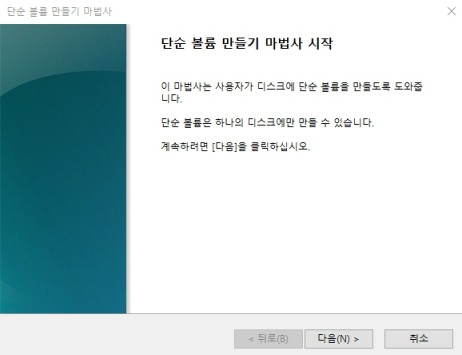 단순 볼륨 만들기 마법사 시작에서 다음을 눌러주면