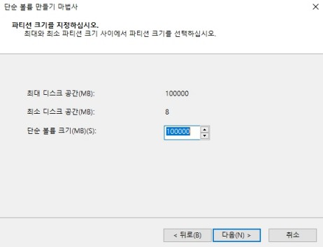 필자는 100GB를 전부 할당해 주도록 하겠다.