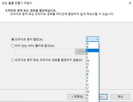 그다음은 드라이브 문자를 선택해 주는 창이 나오는데