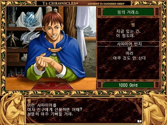 전재산 1000 골드로 사파이어 반지를 사서 도니스에게 반지를 돌려주면 고맙다며 보상으로 1500 골드를 준다.